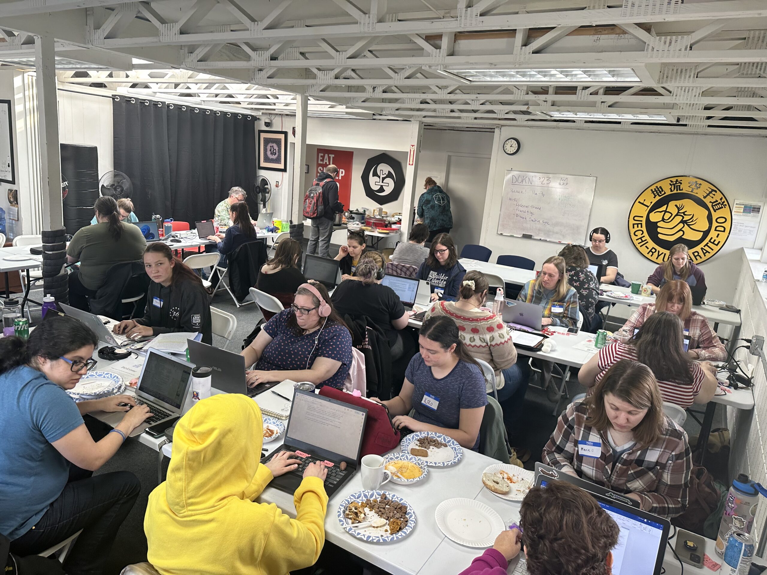 The purpose of DOKN is to “get all the words” in a fun frenzy of writing and snacking. It’s a low-drama affair. Come, write, meet new friends, and catch up with folks you don’t see that often.